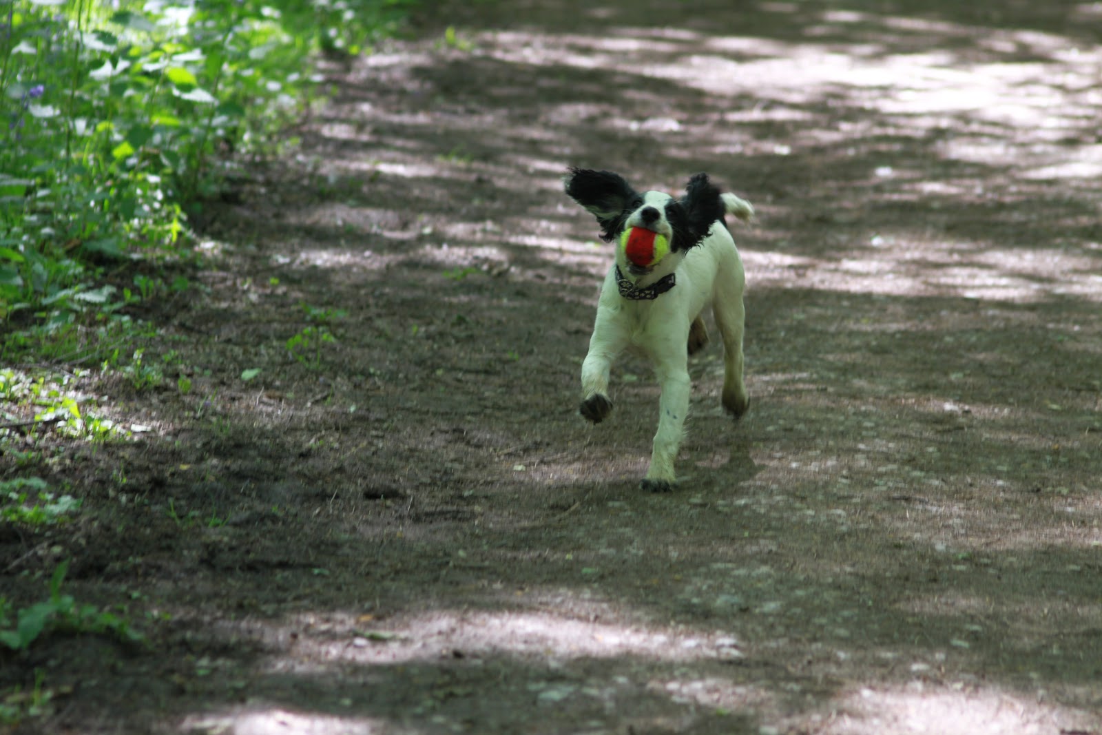 I have started being let off my lead. What a joy it is to run and play without anything attached to you. I have met so many new friends who I have been able to play with properly, and I love it. I was first let off in Hylands Park, then we've been to Hockley Woods a few times. I've never been happier. My recall is perfect; except when there's another dog around, then it takes a lot to get me back again. I am already getting better though, courtesy of cheese as my reward!